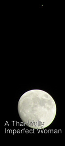Anyway, this is one of my first pictures I took with my new camera on Christmas night. The tiny little star you see is Jupiter, and from what I understand that’s the closest it gets to the moon. I just zoomed right in and look at how cool this photo turned out! It’s like you can see the craters on the moon!
