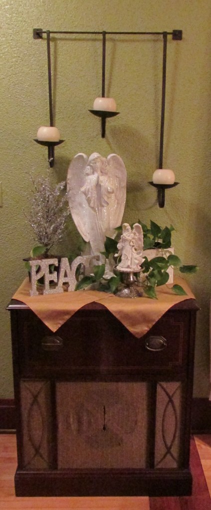 A peaceful gathering above a record player.