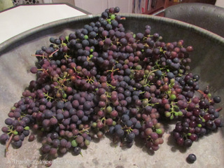I climbed on the chair, ferociously harvesting those grapes so the darn birds wouldn’t win this year.