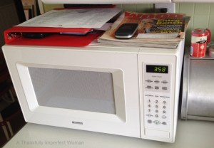 No, we don’t have a new-fangled microwave that actually lets you talk to someone via phone. But our microwave’s cell phone has become quite the joke in our house.