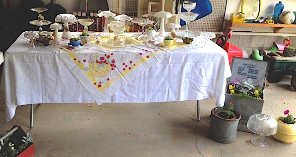 Obviously my tables will look better set up in the park and not in my garage. Threatening black clouds moved me inside last night. Oh – which reminds me – if it’s raining, you won’t find me at the Market. I know I won’t melt in the rain (I always picture the Wicked Witch…’I’m melting!’…’I’m melting!’… No, I actually like the rain, however sitting in it for 2 hours doesn’t sound like much fun. I’d rather be jumping in puddles. 🙂 )